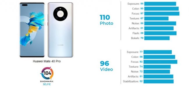 Такая оценка позволила Huawei Mate 40 Pro занять первое место и в этом рейтинге.