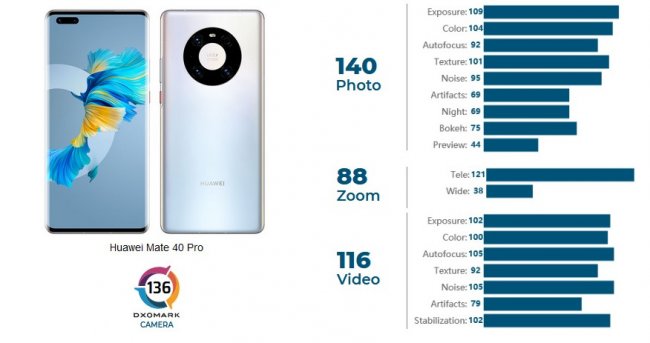 № 1: Huawei Mate 40 Pro сразу же стал лидером сразу двух рейтингов DxOMark - «Смартфоны»