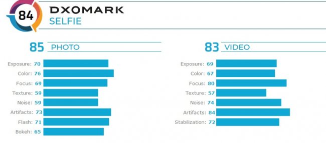 В общем, у селфи-камеры 84 балла: 85 за фото и 83 за видео.