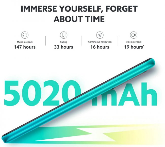 Redmi 9 получил процессор MediaTek Helio G80, 4/64 ГБ памяти, аккумулятор емкостью 5020 мАч. Одного заряда должно хватить на 19 часов в режиме воспроизведения видео, 147 часов прослушивания музыки, 33 часа в режиме телефонных звонков и 16 часов в качестве навигатора.