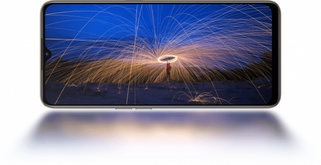 Смартфон получил 6,4-дюймовый OLED дисплей с разрешением Full HD+ (2400×1080 точек), соотношением сторон 20:9, защитным стеклом Corning Gorilla Glass 5 и подэкранным сканером отпечатков пальцев.