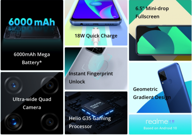 Realme C15: квадро-камера, чип MediaTek Helio G35, батарея на 6000 мАч с 18-ваттной зарядкой и ценник от $137 - «Смартфоны»