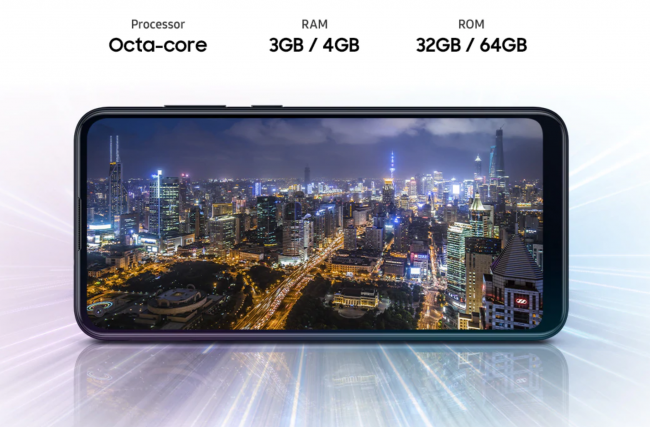 Речь идёт про бюджетник Galaxy M11. Аппарат получил пластиковый корпус с несколькими расцветками и IPS LCD-дисплей на 6.4 дюйма с разрешением HD+ (1560×720p) и вырезом в левом углы для фронтальной камеры на 8 Мп (f/2.0). Новинка работает под управлением восьмиядерного процессора с максимальной тактовой частотой 1.3 ГГц. Модель чипа компания не раскрыла. В смартфоне установлено 3/4 ГБ ОЗУ и 32/64 ГБ ПЗУ. Накопитель можно расширить картой памяти microSD.