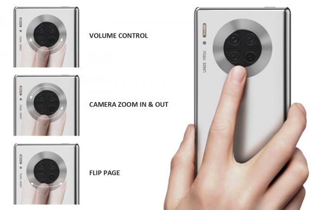Согласно документации, Huawei хочет добавить дополнительный кольцеобразный дисплей вокруг камеры. Это небольшая полоска вокруг модулей, но с сенсорным управлением.
