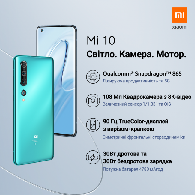 В Украину новинки приедут в конце апреля. Xiaomi Mi 10 обойдется в 21 999 гривен (8128 ГБ) и 22 999 гривен (8/256 ГБ). На выбор есть цвета Twilight Grey и Coral Green.