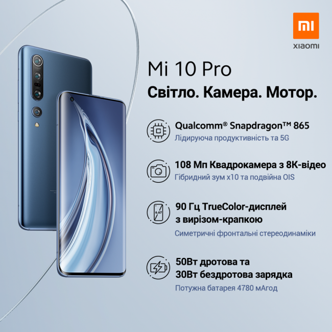 Mi 10 Pro будет стоить 26 999 гривен (8/256 ГБ). Доступны цвета Alpine White и Solstice Grey.