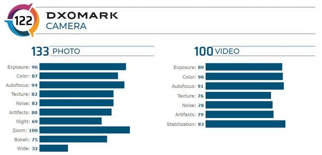 В DxOMark записали в плюсы камеры высокую детализацию, ночной режим, эффекты боке, зум и точный подсчёт значения экспозиции, при съемке видео — корректный просчёт экспозиции, правильную цветовую гамму, хорошую стабилизацию.