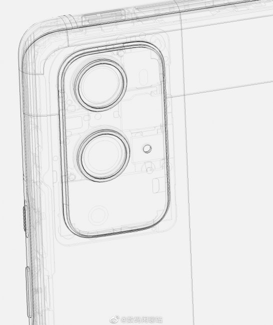 Основная камера изображена с тремя модулями и светодиодной вспышкой. Причем кажется, что два объектива выглядят значительно больше обычного. А вот перископа здесь, похоже, не будет.