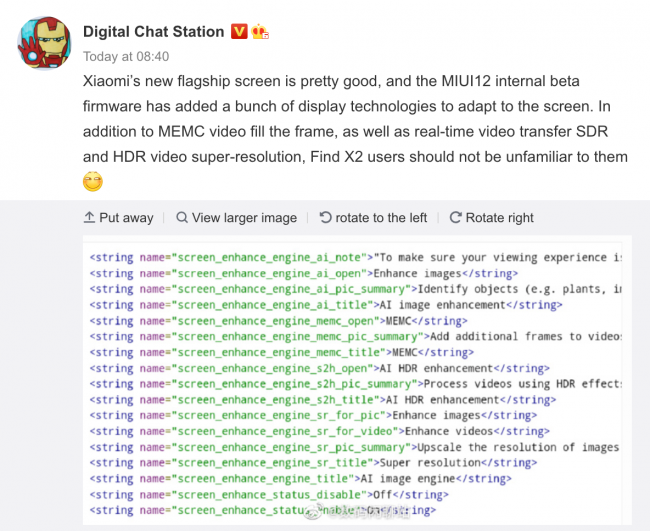 Со стороны программной части, Xiaomi Mi 11 Pro сможет похвастаться поддержкой технологии MEMC (Motion Estimation Motion Compensation), которая улучшает плавность картинки экрана. Кроме этого, в бета-версии прошивки MIUI для аппарата ещё упоминается умный HDR для видео. Такая функция сможет распознавать объекты в ролике и налаживать на них эффект HDR. Похожая технология сейчас есть в OPPO Find X2.