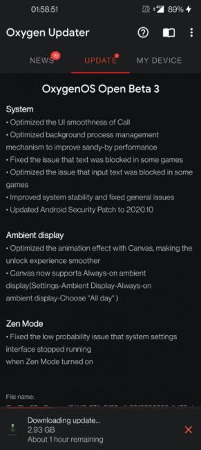 Новую тестовую сборку уже начали получать участники программы бета-тестирования OxygenOS. Если обновления у вас ещё нет, то его можно скачать через приложение Oxygen Updater или на сайте XDA.
