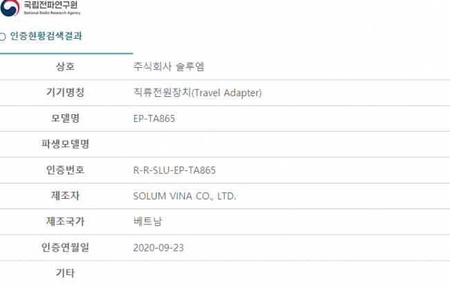 Samsung сертифицировала в Южной Корее новое зарядное устройство с максимальной мощностью (для компании) — 65 Вт.