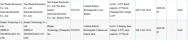Утечка касается автономности новинок. Дело в том, что сразу в нескольких сертификационных ведомствах (корейском Safety Korea, китайском 3C и датском UL Demko) заметили аккумуляторы с модельными номерами A2471, A2431 и A2466. По слухам, это батареи для новых iPhone 12.
