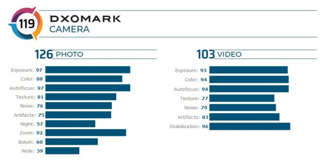 При съемке видео специалисты DxOMark отметили точный и приятный цвет, яркую целевую экспозицию и широкий динамический диапазон, эффективную стабилизацию и хорошо сохранившиеся детали. В минусы записали незначительную нестабильность автофокуса, видимый временной шум и низкую выдержку в тени в сценах HDR.