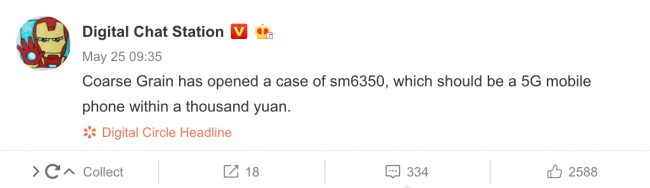 По словам китайского инсайдера Digital Chat Station, это будет Xiaomi. Новинка выйдет на рынок под брендом Redmi и получит чип SM6350. Аппарат, предположительно, будет стоить около 140 долларов США. Если информация подтвердиться, то это будет самый дешёвый 5G-смартфон на рынке. К сожалению, других подробностей о нём пока нет.