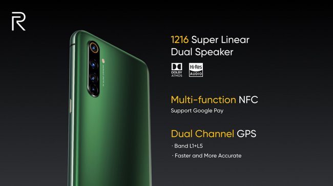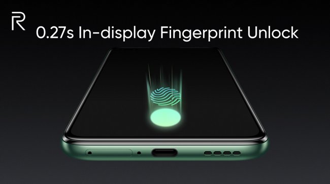 Аккумулятор довольно емкий — 4200 мАч, еще и с быстрой зарядкой SuperDart на 65 Вт. Есть NFC, подэкранный сканер отпечатков пальцев и Android 10 с фирменной оболочкой Realme UI.
