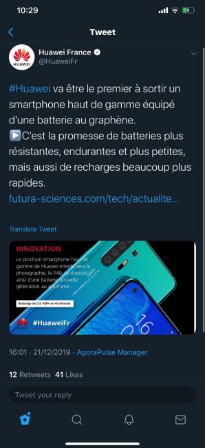 Такая информация появилась в Twitter-аккаунте французского подразделения Huawei. Пост гласит: