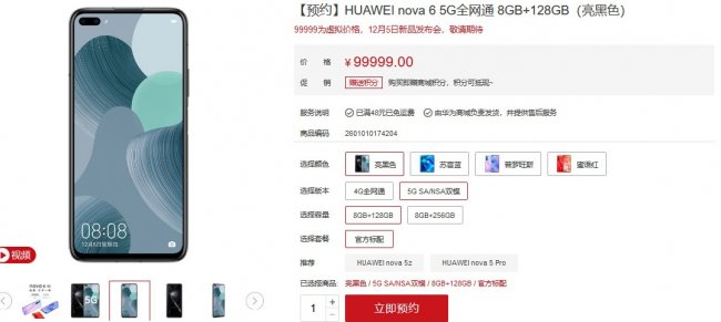 5 декабря Huawei официально представит свой новый смартфон Nova 6. Однако уже сейчас компания начала принимать предзаказы в своем китайском онлайн-магазине Vmall.