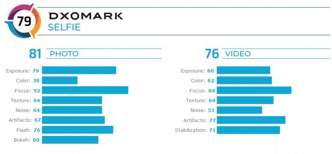 В результате за фото селфи-камера смартфона получила 81 балл, за видеовозможности — 76 баллов. Средний балл — 79.