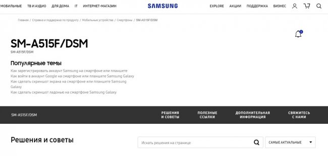 Смартфон с номером модели SM-A515F/DSM появился на странице техподдержки Samsung. Это значит, что его анонс уже близко. Можно предположить, что новинку покажут в этом или в начале следующего месяца. По слухам, презентация устройства пройдёт в Индии.
