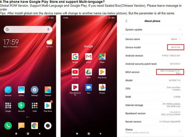 Один из владельцев Redmi K20 Pro рассказал, что после установки глобальной бета-версии прошивки MIUI 10 Global 9.5.31 в настройках смартфона изменилось и его название — теперь там указан Xiaomi Mi 9T Pro. Кроме того, с глобальной версией обновления появились сервисы Google.