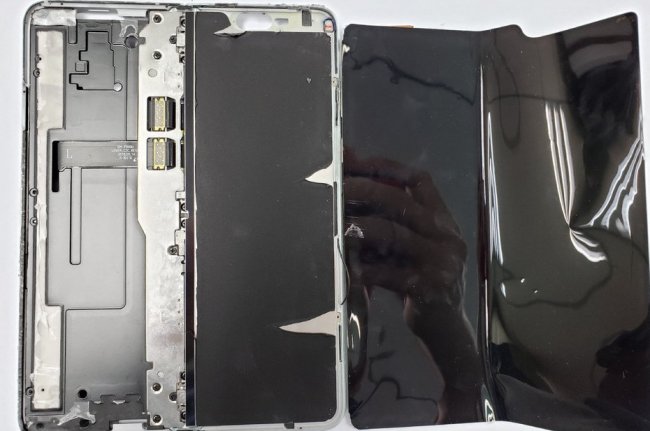 Сам пользователь пишет, что 7,3-дюймовый экран снимается легко, но без повреждений точно не обойтись. «У меня было ощущение, будто я не разбираю экран, а рву резину», — делится он своими впечатлениями. По сути, это обычный гибкий AMOLED дисплей, только не под защитным стеклом (в обычных смартфонах именно оно придает ему твердости), а под специальной пленкой. Напомним, Samsung настоятельно не рекомендует снимать ее — иначе можете попрощаться с исправным экраном.
