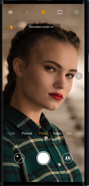 Сбоку меньшего дисплея расположена утолщенная планка с аппаратной начинкой и тройной камерой Leica (40+16+8 Мп). Ее можно использовать и для селфи: отдельной фронтальной камеры у смартфона нет.