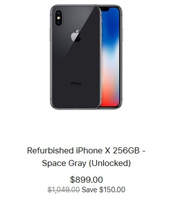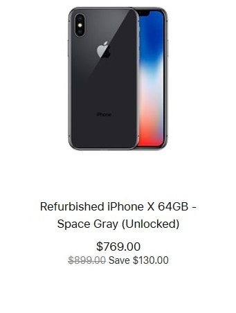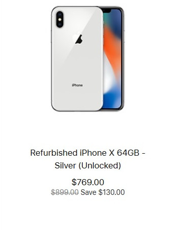 За восстановленный iPhone X с 64 ГБ встроенной памяти просят $769, версия с 256 ГБ памяти стоит $899. Новые модели в свое время стоили $999 и $1149 соответственно.