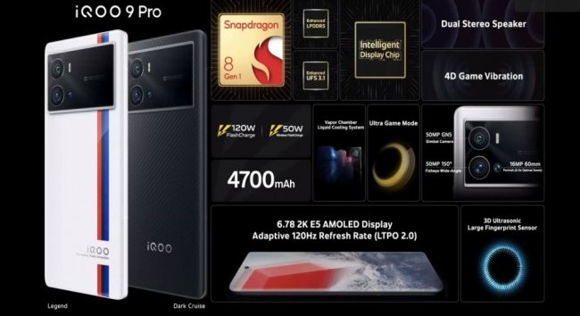 iQOO 9 Pro вышел на глобальном рынке: флагман с чипом Snapdragon 8 Gen 1, беспроводной зарядкой и камерой на 50 МП за $870 - «Смартфоны»