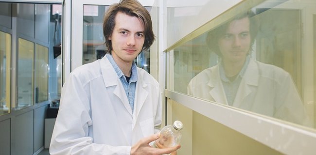 Аспирант Никита Некрасов готовит подложки для фотохимической пришивки аптамеров