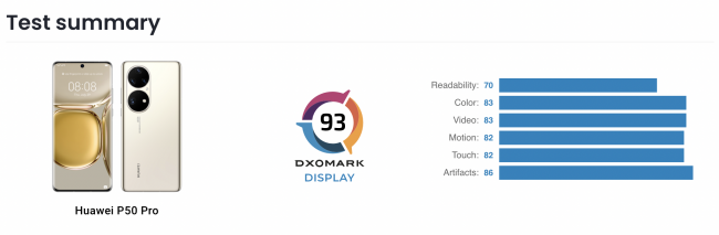 Специалисты французской лаборатории DxOMark продолжают тестировать смартфон Huawei P50 Pro. На этот раз они добрались до экрана новинки.