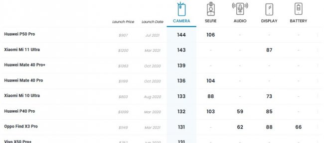 Несмотря на это, Huawei P50 Pro вслед за предшественником возглавил общий рейтинг DxOMark, подвинув конкурента Xiaomi Mi 11 Ultra, у которого всего на 1 балл меньше. Кроме того, флагман лидирует и в рейтинге селфи-камер с максимальным баллом 106.