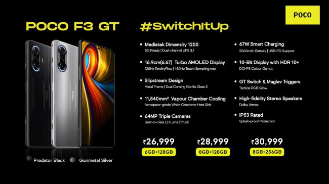 POCO F3 GT официально представлен: копия Redmi K40 Gaming Edition с чипом Dimensity 1200, 67-ваттной зарядкой и защитой IP53 за $362 - «Смартфоны»