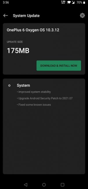 Пока разработчики OnePlus тестируют Android 11 на OnePlus 6 и OnePlus 6T, владельцы аппаратов начали получать стабильную версию системы OxygenOS 10.3.12. Что известно Это минорное обновление системы. Прошивка весит 175 МБ и в неё добавили июльский патч безопасности Google. Он закрывает некоторые