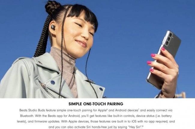 Как оказалось, Apple, а точнее ее страница на Amazon US, использует флагман Samsung Galaxy S21 для рекламы новых наушников Beats Studio Buds. Это удивительно потому, что бренд Beats принадлежит Apple, а смартфон в рекламе не показывают с негативной стороны.