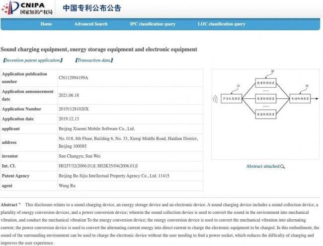 Технология описана в патенте, поданном в Национальное управление интеллектуальной собственности Китая (CNIPA). Речь идет о звуковой зарядке: в устройстве будут задействованы звуковые и другие компоненты, обеспечивающие питание для зарядки смартфонов и других устройств. Оно будет состоять из звукового зарядного устройства (которое будет способно собирать звук), устройства для хранения энергии и электронного устройства.