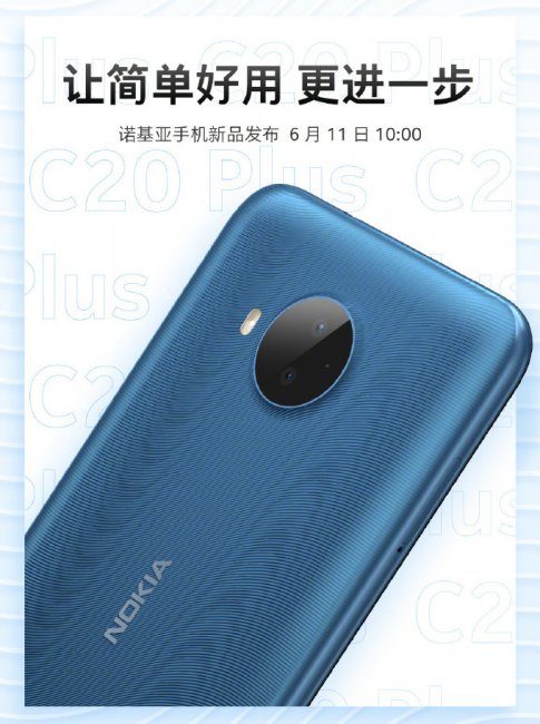 Производитель опубликовал в социальной сети Weibo постер с изображением новинки и датой анонса. Аппарат покажут в Китае 11 июня. Nokia C20 Plus внешне будет похожа на младшего брата, но при этом получит двойную камеру, вместо одинарной.