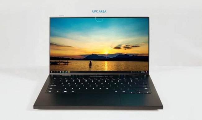 Еще одной разработкой компании стал дисплей для ноутбука с подэкранной веб-камерой. Это 17-дюймовая панель OLED с тонкими рамками.