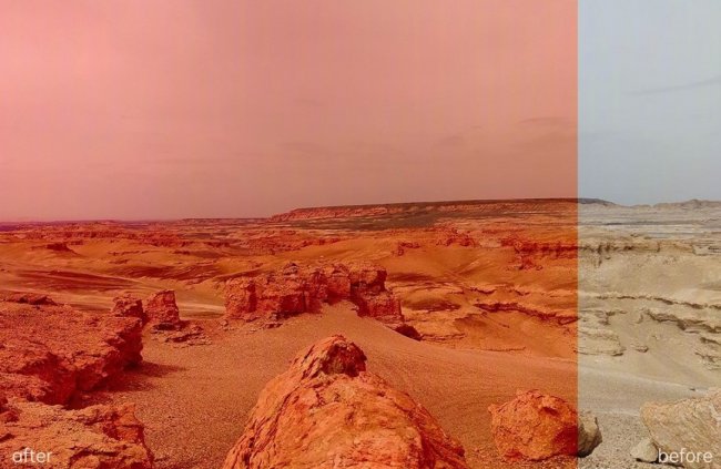 Помимо дизайна, специальная версия отличается наличием специальных тем, динамических обоев и трех фильтров, которые помогают сделать обычные снимки в пейзажи Марса.