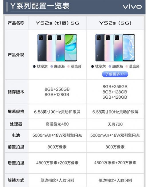 Компания Vivo в декабре прошлого года выпустила на рынок бюджетный смартфон Vivo Y52s, а сейчас показала в Китае его новую версию с приставкой t1 в названии.