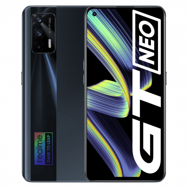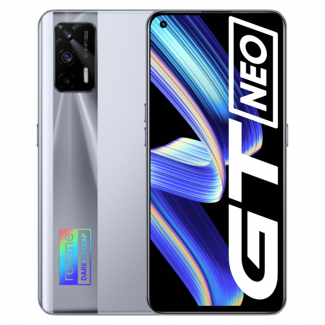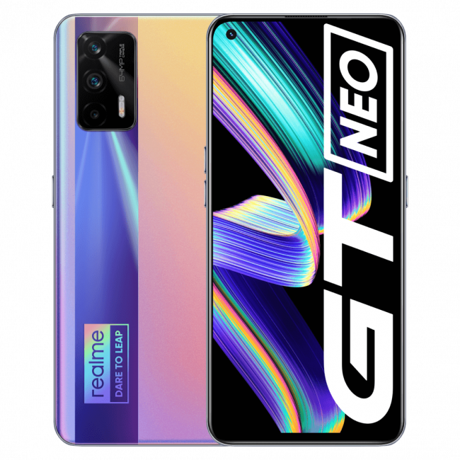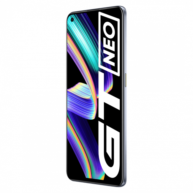 Аппарат получил такой же дизайн, новые расцветки корпуса и другой процессор. Вместо Snapdragon 888, Realme GT Neo оснастили более простым SoC MediaTek Dimensity 1200. Он по мощности сопоставим с Qualcomm Snapdragon 870 и построен по 6-нанометровому техпроцессу. Dimensity 1200 имеет встроенный 5G-модем, а также три ядра Cortex-A78 с частотой 2.6 ГГц, одно ядро Cortex-A78 с частотой 3.0 ГГц и четыре Cortex-A55 на 2.0 ГГц. Кстати, Realme GT Neo — это первый смартфон на рынке с таким чипом на борту.