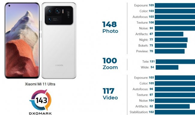 В результате тестирования Xiaomi Mi 11 Ultra получил в общем 143 балла: 148 за фото, 100 за зум и 117 за видео. Пока есть только оценки — подробный обзор DxOMark обещает выпустить позже.