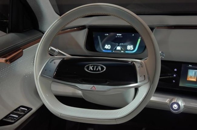А на отдельном стенде Kia показала альтернативный вариант интерьера, который отличается рулем с встроенными в ступицу сенсорной панелью и детектором жестов: некоторыми функциями мультимедиа можно будет управлять, не отводя рук от баранки. Также запланирована связь 5G и раздельная аудиосистема для переднего и заднего рядов, с помощью которой пользователи смогут слушать разную музыку.