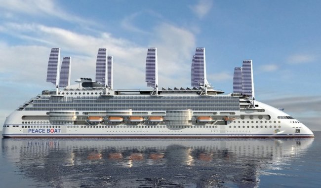 Обычно круизные суда не приносят большой пользы окружающей среде. Среднестатистический корабль ежедневно вырабатывает около 80 000 литров сточных вод, а с устаревшими фильтрационными системами в моря часто сбрасывают лишь минимально очищенные отходы. Компания Peace Boat задалась целью доказать, что существует жизнеспособная альтернатива – энергоэффективное судно, которое получает питание от 10 выдвижных ветрогенераторов и 10 выдвижных фотоэлектрических парусов. Основная задача проекта – снизить расход топлива на 20% и уменьшить выбросы в виде углекислого газа и сточных вод.