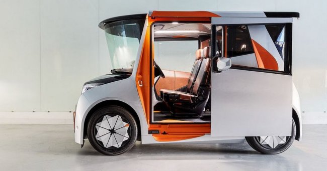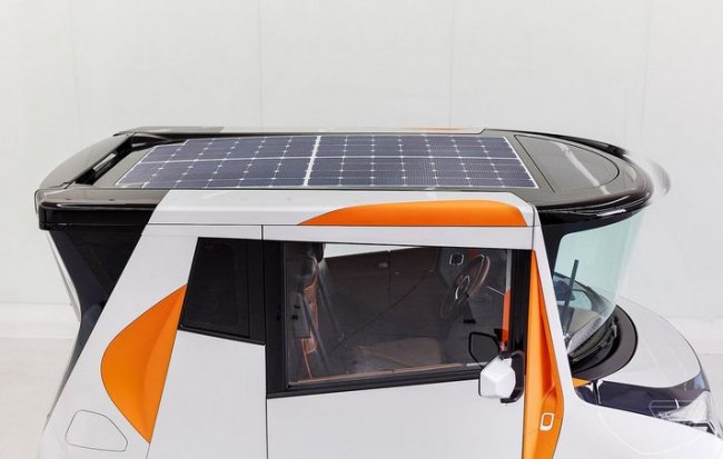Компактный автомобиль оборудован удобной системой трансформации сидений. Кресла можно смещать не только вперед-назад, но и, вообще, в разные стороны. Двери не распахиваются, как в обычных машинах, а смещаются, как в минивэне – удобно, если на парковке мало места. В тоже время крыша – это огромная солнечная панель. Благодаря ей электромобиль всегда будет иметь источник питания. Кроме этого поддерживается возможность беспроводной зарядки, наподобие как в BMW 530e.