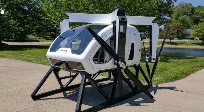 По словам производителя, SureFly – это первый в мире персональный электрический гибридный октокоптер. Его кабина и большинство других элементов выполнены из карбонового волокна, а в воздух он поднимается благодаря четырем пропеллерам с фиксированными противоположными винтами на каждом из них. Аппарат весом 499 кг оснащен бензиновым генератором, который вырабатывает электричество для питания восьми электродвигателей. Также на его борту установлены литий-ионные батареи, которые могут быть задействованы в случае отказа ДВС, кроме того он снабжен спасательными парашютами.