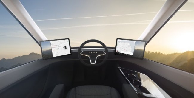 В качестве панели управления Tesla использует целых два тачскрина, расположенных по обеим сторонам от водителя. Они предоставляют навигационную информацию, мониторинг слепого пятна, доступ к различным приложениям для регистрационных данных о поездках и другое. Маск также говорит о встроенном программном обеспечении для управления грузопотоками и маршрутами автопарков, которые обычно продаются сторонними производителями, что делает эксплуатацию традиционных тягачей более дорогой.