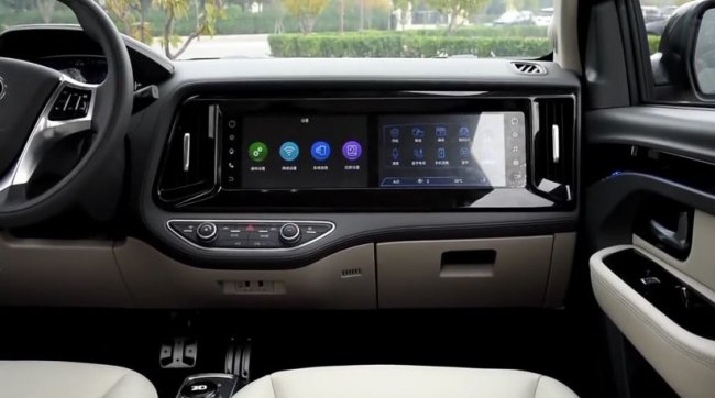 Китайский электромобиль оснащен виртуальной панелью приборов. Также в интерьере установлены сразу два сенсорных дисплея мультимедиа. В его комплектацию входят электроприводы стеклоподъемников и зеркал заднего вида, кондиционер, 2 подушки безопасности и камера заднего вида.
