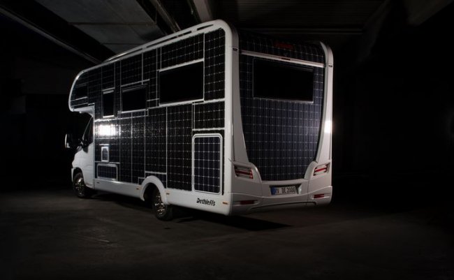 На последней выставке Caravan Salon, что прошла в начале этого месяца в Дюссельдорфе, производитель Dethleffs представил оригинальный автодом с литий-ионным тяговым аккумулятором и полностью электрическим приводом, которые работают от солнечных батарей.