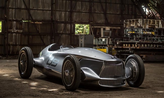 Если бы где-то в японской глубинке, в лесу или заброшенном сарае, исследователи нашли гоночный автомобиль Infiniti сороковых годов, то он бы выглядел так, полагают дизайнеры. Отсылок к современным машинам бренда тут немного: форма решётки радиатора с двойными дугами, наклонные «жабры» позади передних колёс да острая складка на борту, протянувшаяся от носа почти к самой корме. В остальном — погружение в далёкое прошлое, которого у самой Infiniti никогда не было (марка основана в 1989 году).