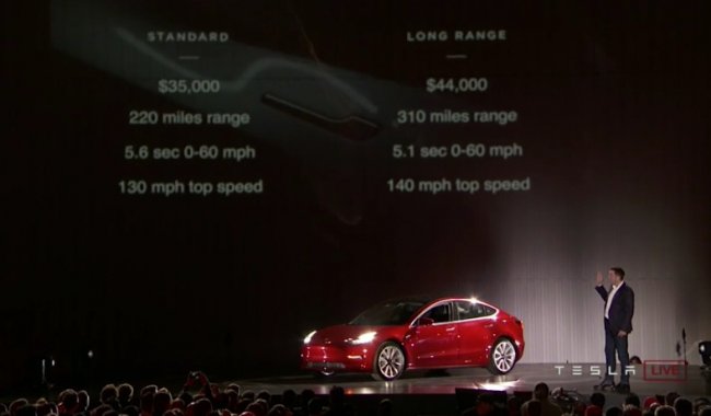 В ходе мероприятия глава компании Илон Маск также поделился подробностями о всех возможных комплектациях и характеристиках модели. Как и было заявлено ранее, базовая Tesla Model 3 предлагается по цене $35 000. Этот электромобиль получил 354 км запаса хода (по циклу EPA), разгон до 100 км/ч за 5,6 секунды и максимальную скорость 210 км/ч.